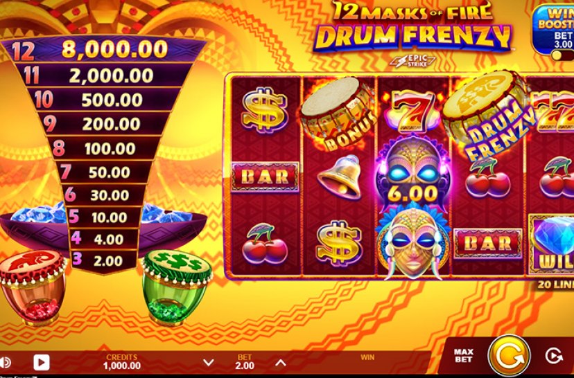 Spil 12 Masks of Fire Drum Frenzy