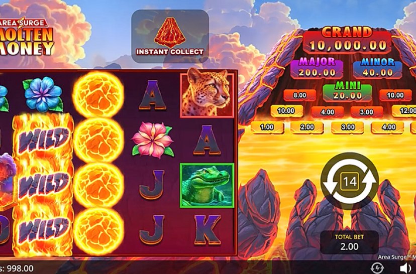 Area Surge™ Molten Money from Games Global’s AreaVegas imprint erupts with volcanic rewards. Spin five reels over a lava-flow backdrop and unlock Cash Upgrade—transforming symbols into higher-value prizes. Cash Collect gathers Fireball icons toward bonus triggers, while Free Spins deliver endless upgrades that don’t reset. Activate the Pick Feature for hidden boosts, and witness eruptions animate your wins. Medium-high ...