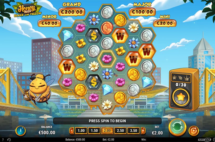Træd ind i Honey Rush Black and Yellow, hvor urbane beats møder summende bikube-energi. Denne nye version kombinerer farverige visuals med dynamisk gameplay. Hvert spin byder på rytme, energi og spænding.