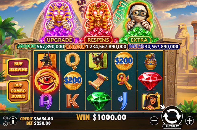 Opdag oldtidens kraft i Mummy’s Jewels 1000, hvor Eye of Ra Collect-symboler samler penge op til 10.000x. Super Collects kan også give multiplikatorer på op til 100x, hvilket forstærker gravkammerets rigdomme i denne egyptisk-tema-slot fyldt med mystiske mekanikker og højt gevinstpotentiale.