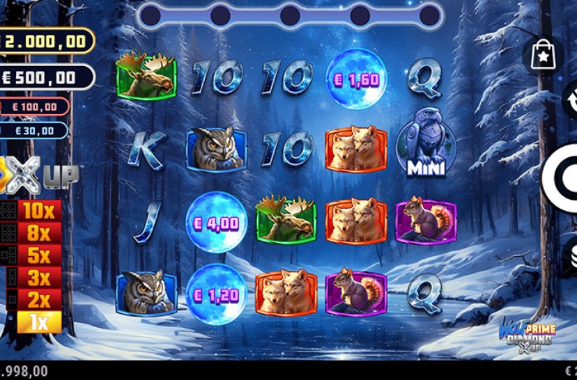 Howl into Wolf Prime Diamond X UP™, the next evolution of the Diamond X UP™ series. This edition introduces a fourth Diamond for even bigger upgrade potential. When X UP™ scatters land in pairs, their colors combine to trigger unique upgrade effects, enhancing your bonus path. With striking visuals, dynamic upgrades and powerful wolf energy, this slot amplifies every spin with high-voltage excitement.