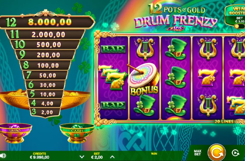 Mærk rytmen i 12 Pots of Gold: Drum Frenzy, et højenergisk irsk eventyr drevet af Epic Strike™- og Drum Frenzy™-mekanikker. Hurtige spins og elektrificerende funktioner løfter gevinstpotentialet op til 5.165x og skaber en ny spændingstakt for hvert slag.