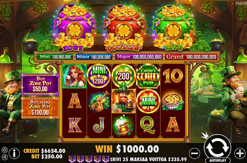 Lucky's Wild Pub 2 by Pragmatic Play welcomes players back to the lively Irish pub run by its mischievous leprechaun host. Bonus coins may trigger the Pot Respin feature with three respins and powerful modifiers. Purple coins can split the grid into multiplier zones of up to 100x, creating exciting chances for booming rewards.