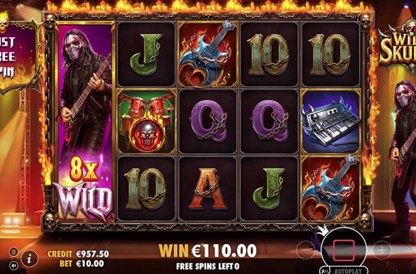 Wild Skullz fra Pragmatic Play byder på en elektrisk rockoplevelse med ekspanderende wilds og multiplikatorer op til 512x. Når en ekspanderende wild indgår i en gevinst, forøger dens multiplikator hele kombinationen. Tre kranie-scatters udløser bonusspillet, hvor en rockstjerne-wild starter på hjul fem og bevæger sig hen over spillefeltet, hvilket holder spændingen i live ved hvert spin.